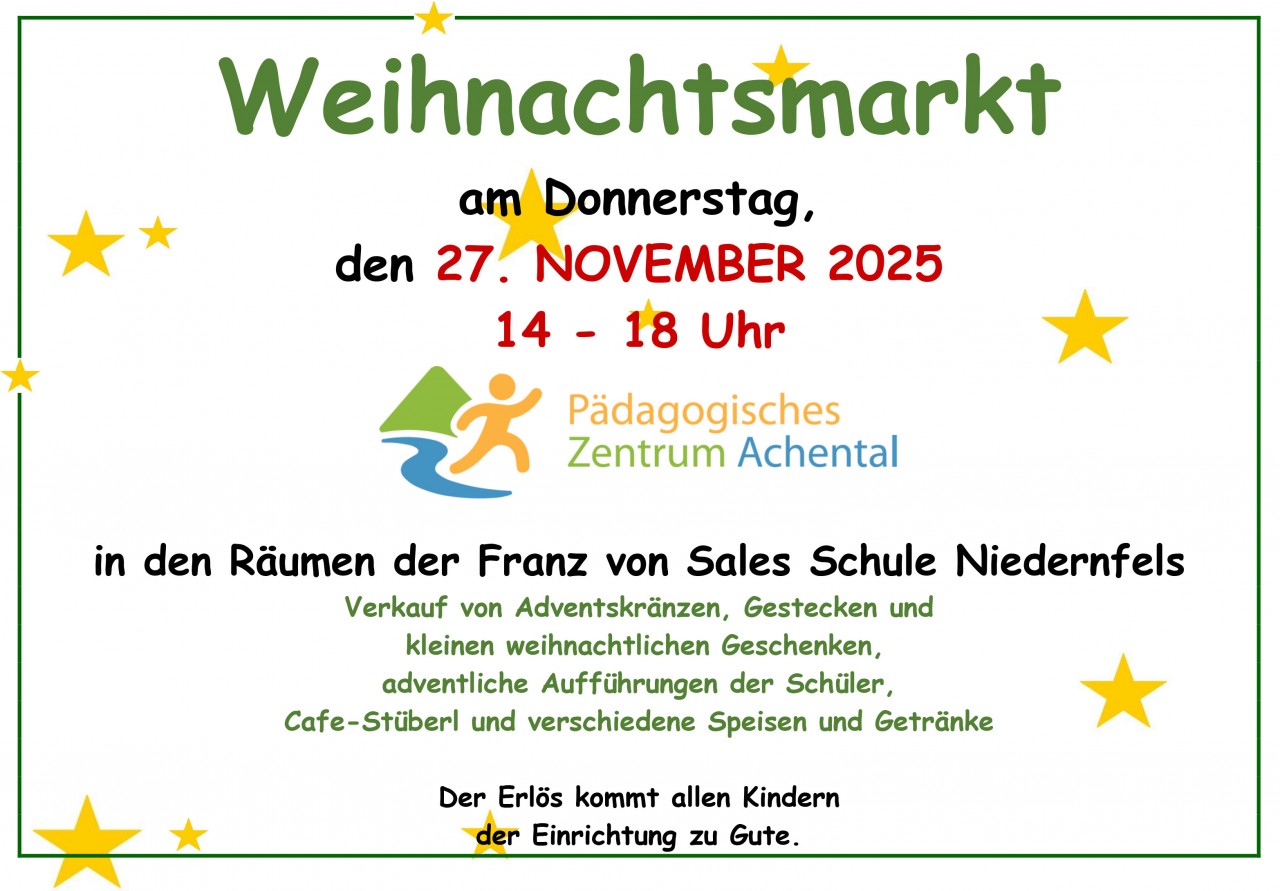 Los geht es am 27. November 2025 mit dem Weihnachtsmarkt in unserer Franz von Sales Schule in Niedernfels.