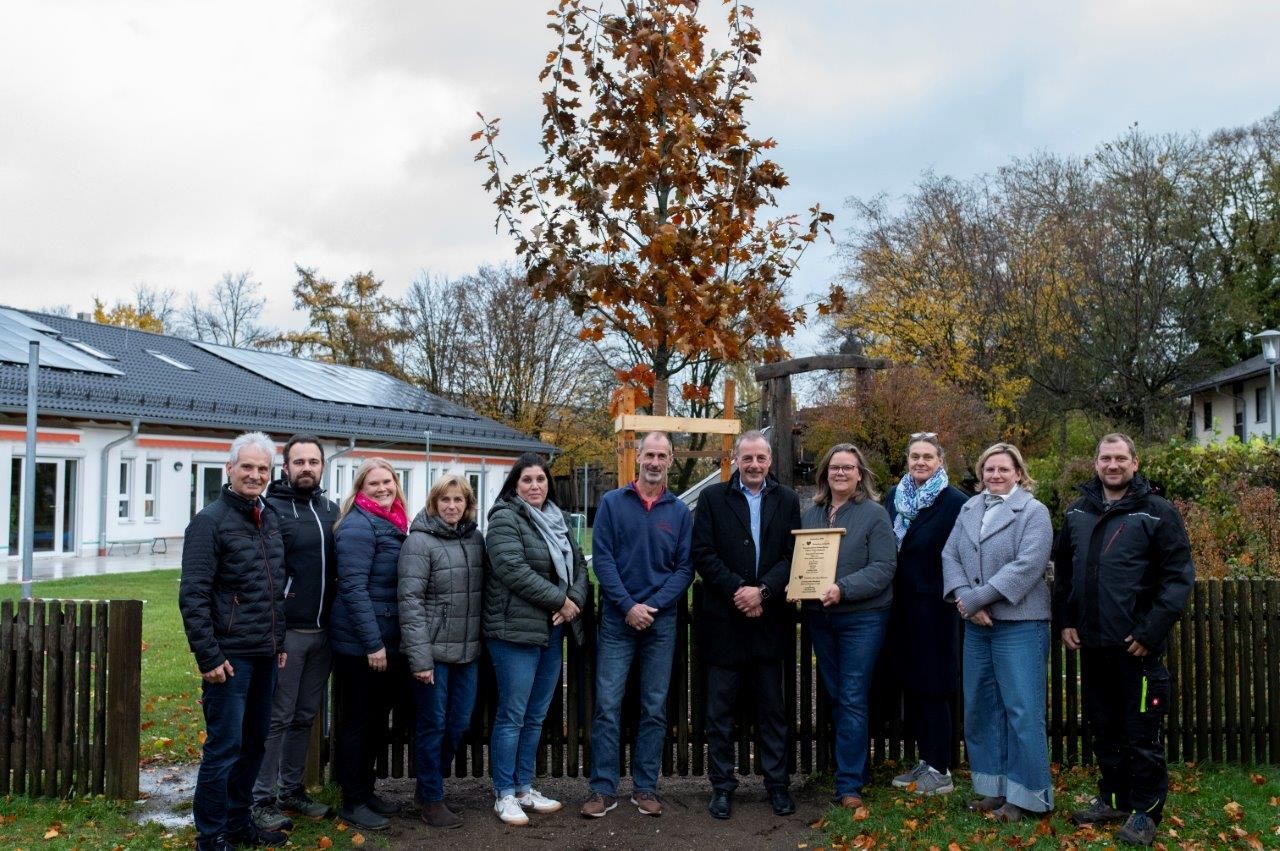 Dank vieler Sponsor:innen und Helfer:innen konnte eine amerikanische Roteiche im Kinderhausgarten gepflanzt werden.