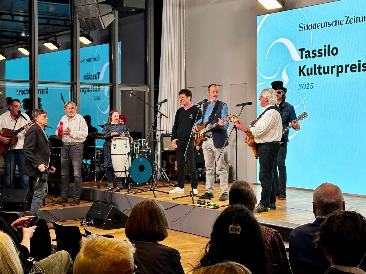 Die Süddeutsche Zeitung verleiht alle zwei Jahre einen Kulturpreis an Kulturmacher:innen aus dem Münchner Umland: Den Tassilo-Preis. Namensgeber ist der bayrische Herzog Tassilo. Wir freuen uns sehr, dass in diesem Jahr die inklusive Rock-Band "Das rote Motorrad" unseres Einrichtungsverbundes Steinhöring (EVS) einen der drei Hauptpreise erhalten hat. Ende November 2025 wurde den Musikerinnen und Musikern anlässlich einer Festveranstaltung im großen Saal des Münchner Literaturhauses der Preis verliehen.