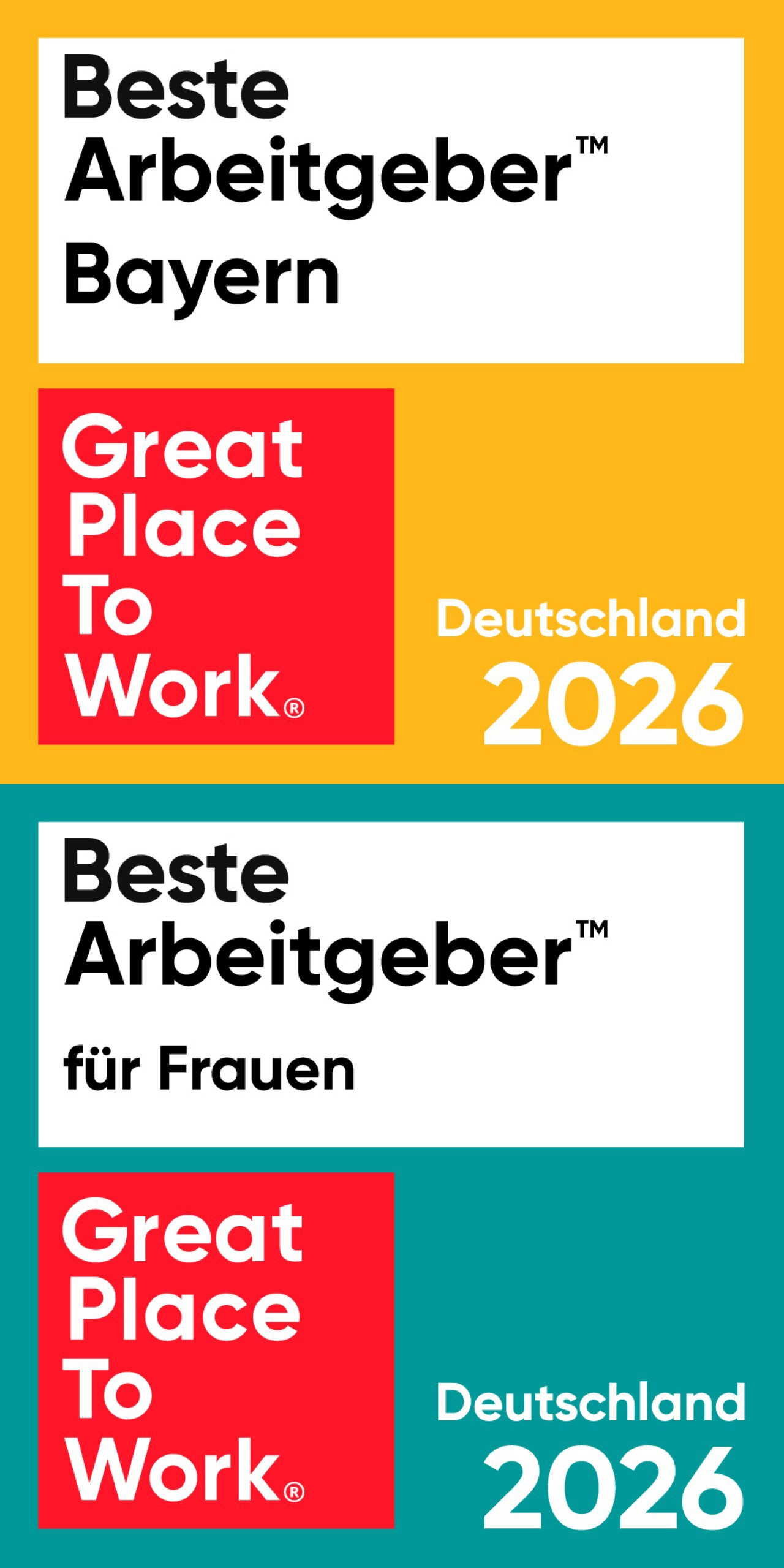 Rahmen-Informationen zum Wettbewerb „Bayerns Beste Arbeitgeber 2026“ Die Auszeichnung basiert auf einer anonymen und repräsentativen Befragung der Mitarbeiter:innen. Themen der Befragung sind unter anderem Vertrauen in Führungskräfte, Teamgeist, Fairness, Wertschätzung, Respekt sowie Identifikation mit dem Unternehmen. Darüber hinaus wird das Management im Rahmen eines Kultur Audits befragt, welche Maßnahmen und Programme zur Gestaltung einer attraktiven Unternehmenskultur aufgelegt wurden. Die Ergebnisse der beiden Befragungen (Great Place To Work® Mitarbeiterbefragung + Kultur Audit) sind im Verhältnis von 3:1 gewichtet. Die Bewertung durch die Mitarbeiter:innen steht also im Vordergrund. Am aktuellen Great Place To Work® Landeswettbewerb „Bayerns Beste Arbeitgeber 2026“ nahmen bayrische Unternehmen aller Branchen und Größen teil. Sie stellten sich freiwillig einer unabhängigen Prüfung ihrer Arbeitsplatzkultur durch das Great Place To Work® Institut und dem Urteil der eigenen Mitarbeiter:innen. Aus dem Gesamtteilnehmerfeld wurde die Liste der besten Arbeitgeber ermittelt (Benchmarking differenziert nach Unternehmensgrößen).