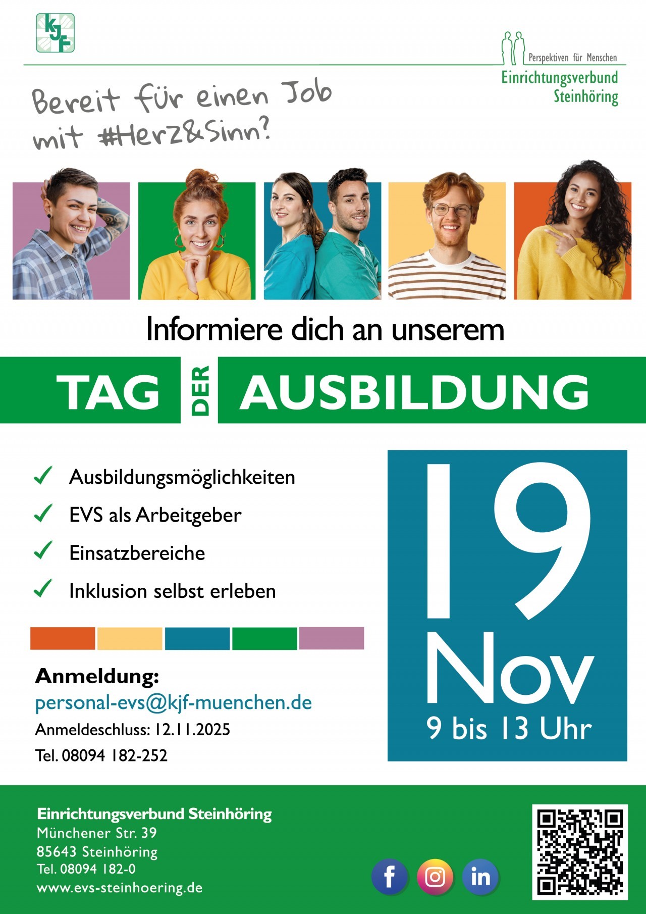 Bereit für einen Job mit #Herz&Sinn? Am 19. November 2025 findet im Einrichtungsverbund Steinhöring ein Tag der Ausbildung statt. Ganz nach dem Motto: Inklusion selbst erleben!