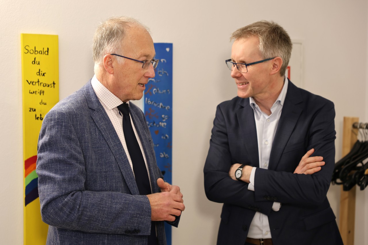 KJF-Aufsichtsratsvorsitzender Ronald Kühn (l.) im Gespräch mit Alois Obermaier vom Erzbischöflichen Ordinariat München.
