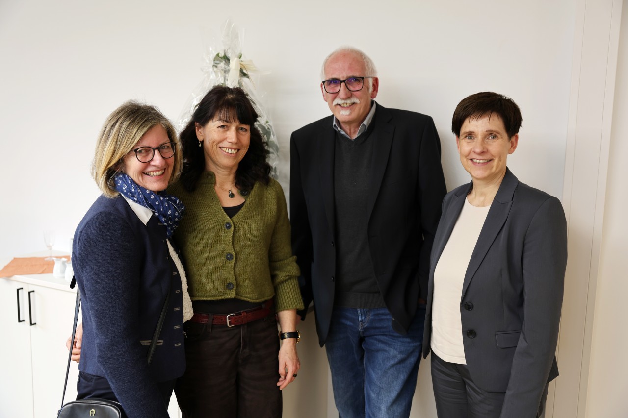 Gesamtleiter Christoph Cramme (2.v.r.) und KJF-Vorständin Barbara Igl (1.v.r.) zusammen mit Dagmar Netzer (2.v.l.), Vermieterin und Leiterin des Wohnstiftes Marquartstein, und Sieglinde Ott, stellvertretende Wohnstiftleiterin.
