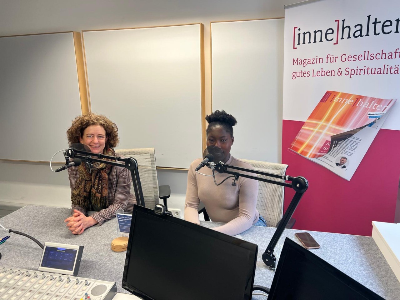Dörthe Friess (l.) und Aicha bei der Aufzeichnung des Podcasts „Total Sozial“.