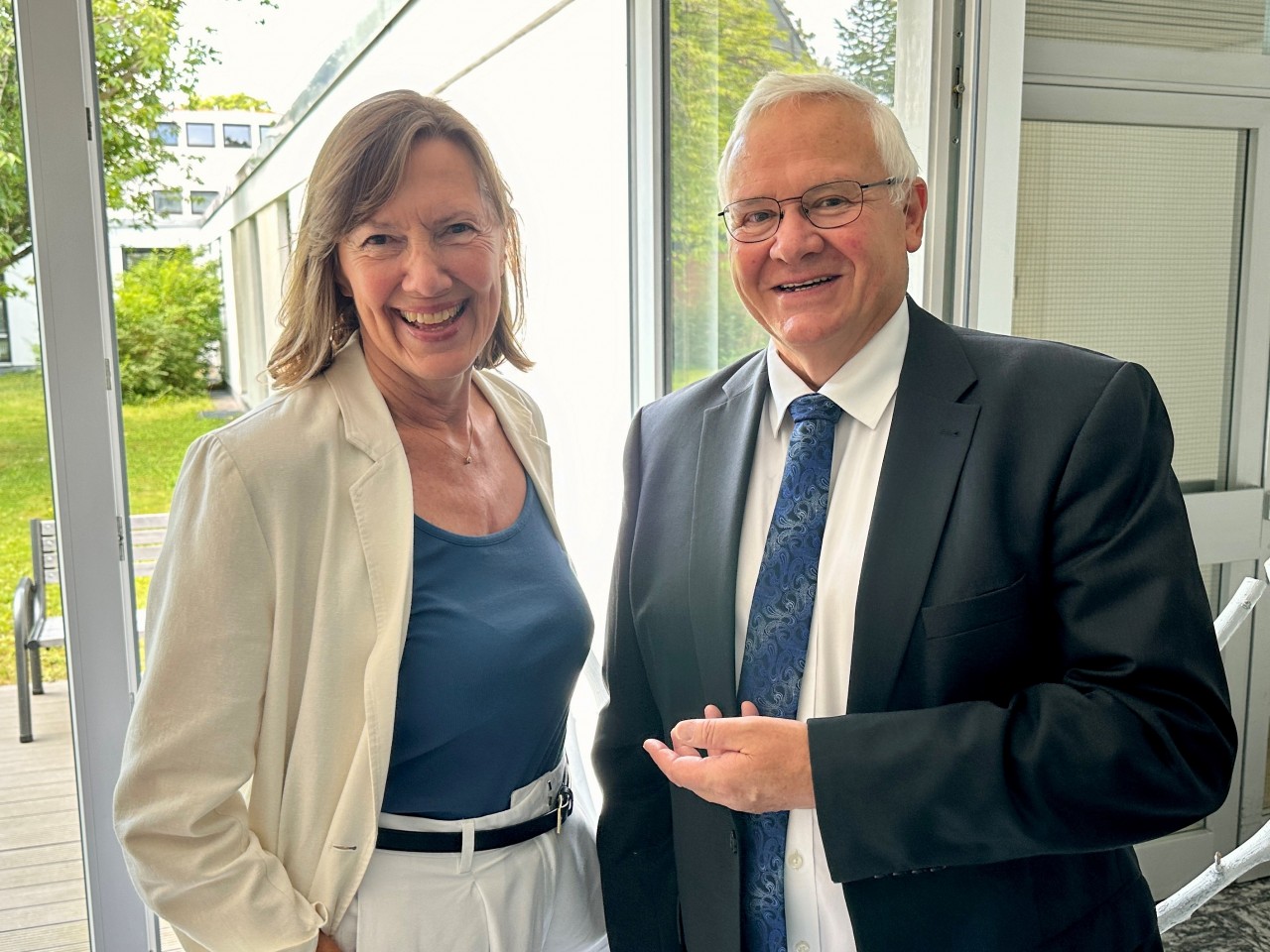 Gabriele Heigl mit Bartholomäus Brieller, dem langjährigen Vorstand der KJF, bei dessen Abschiedsfeier im Juli 2024. Foto: KJF