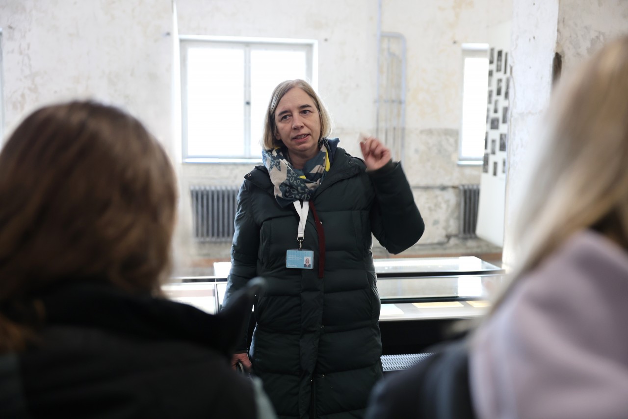 Geschichte vor Ort: Viola Bögeholz, Referentin des Max Mannheimer Studienzentrums, führt die Schülerinnen durch die KZ-Gedenkstätte Dachau.